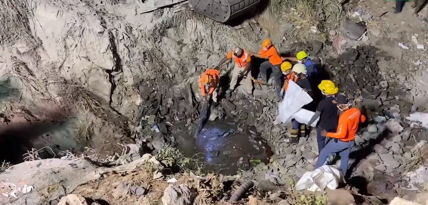 Además, se necesitó usar una retroexcavadora por la razón de que el cuerpo estaba demasiado enterrado en la arena y era imposible sacarlo.