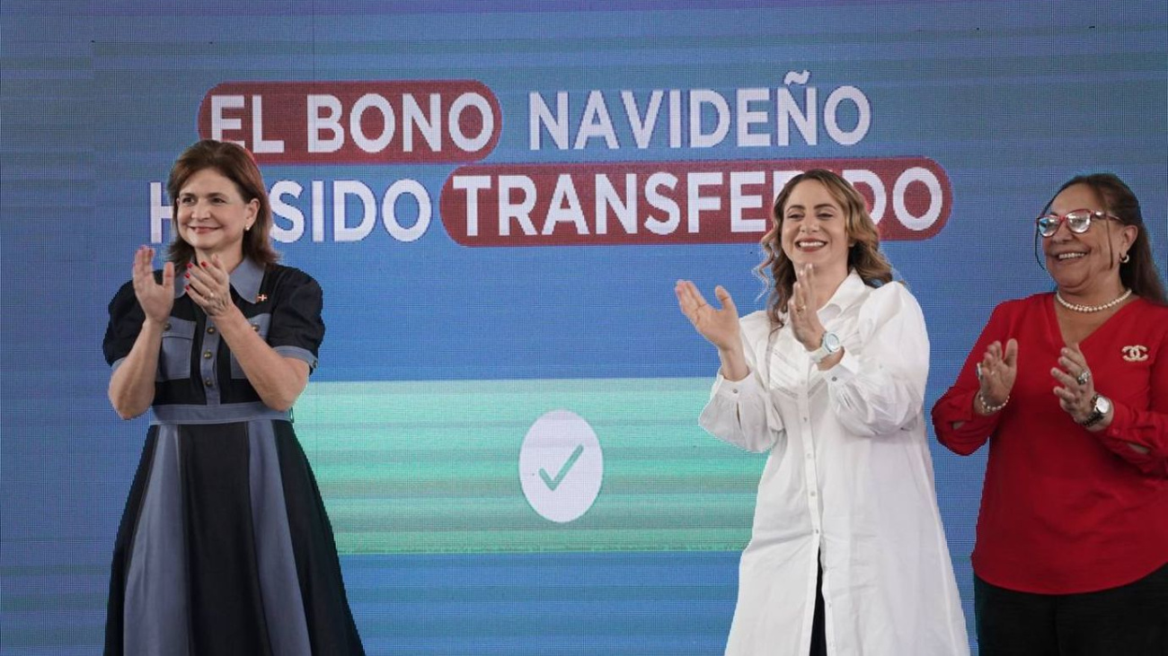Santiago.- En un acto encabezado por la vicepresidenta de la República, Raquel Peña, y la directora general del programa Supérate, Gloria Reyes, el Gobierno inició la entrega del Bono Navideño Digital, que será distribuido a 500,000 dominicanos, a través de “Tu Efectivo”, con un monto de 1,500 pesos cada uno.