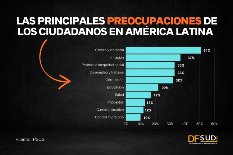 “La delincuencia y la violencia son una preocupación importante en Latinoamérica y ha ido creciendo con el tiempo. Si nos fijamos en la preocupación socioeconómica, como la pobreza, la inflación, el desempleo, en general ha bajado, si lo comparamos con los últimos años. Y la educación y la sanidad se mantienen relativamente estables”, explicó Jean-Christophe Salles, CEO de Ipsos para Latinoamérica.