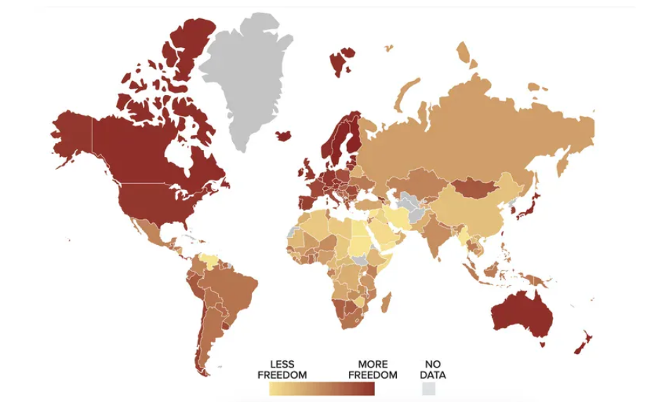 Cato y Fraser advirtieron de una amenaza a la libertad humana tras la pandemia del coronavirus ya que esta condición llevó a descensos significativos en el estado de derecho, la libertad de movimiento y hasta de comercio. Desde entonces, no se ha podido recuperar y, por el contrario, continuó descendiendo, por lo que ahora la libertad mundial se ubica en un nivel inferior al del comienzo de los estudios, cuando se registró el punto más bajo de las últimas dos décadas.