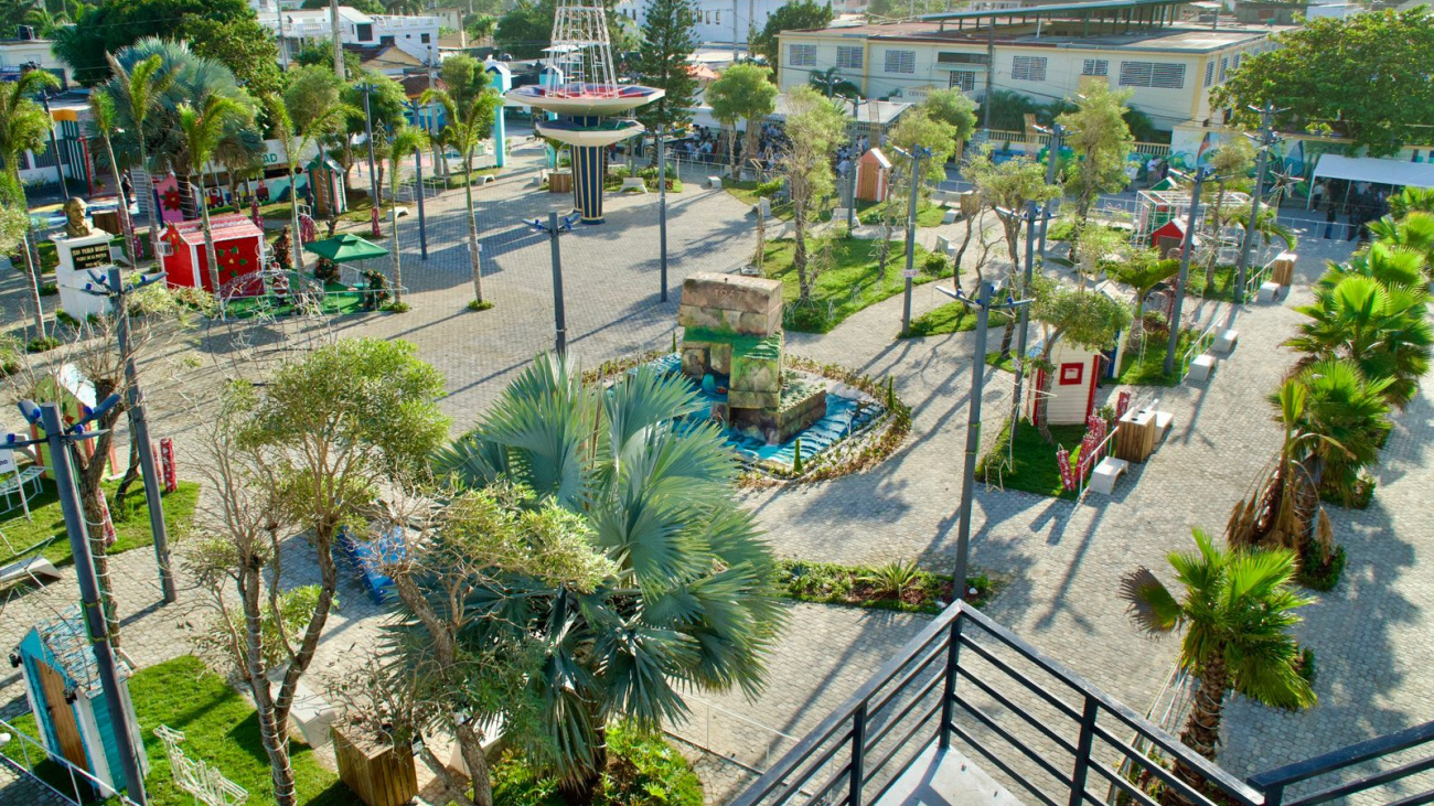 Acto seguido, el presidente Abinader inauguró el parque central Juan Pablo Duarte, que mejora la imagen urbana y la calidad de vida de los ciudadanos, con un espacio abierto, seguro, incluyente y sostenible. Sus elementos principales son los muros, las palmeretas y el mirador.