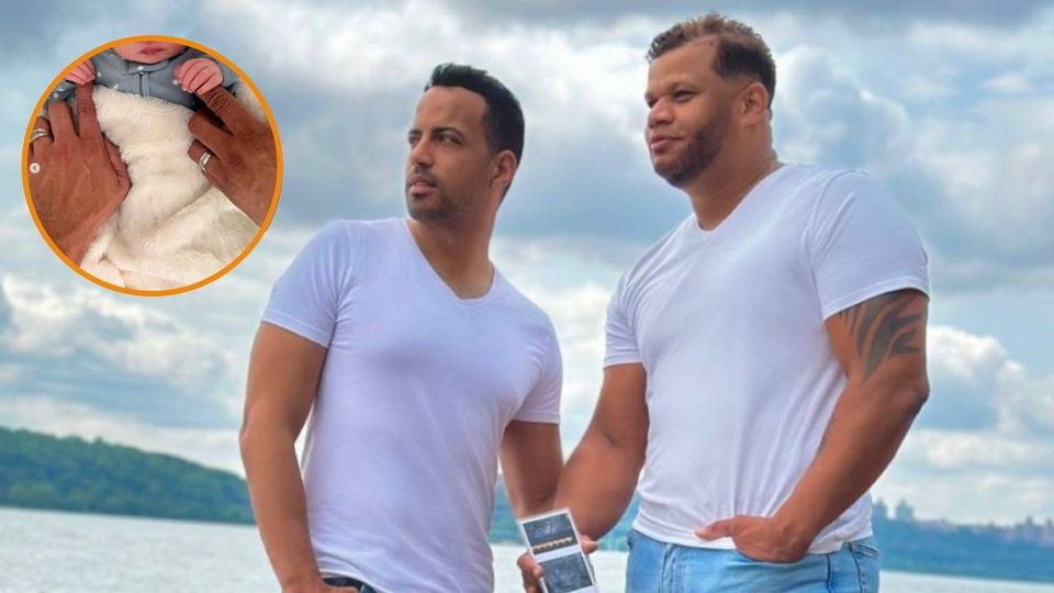 Periodista dominicano de "News 12 Networks", Eliecer Marte y su esposo celebran la llegada de su hija