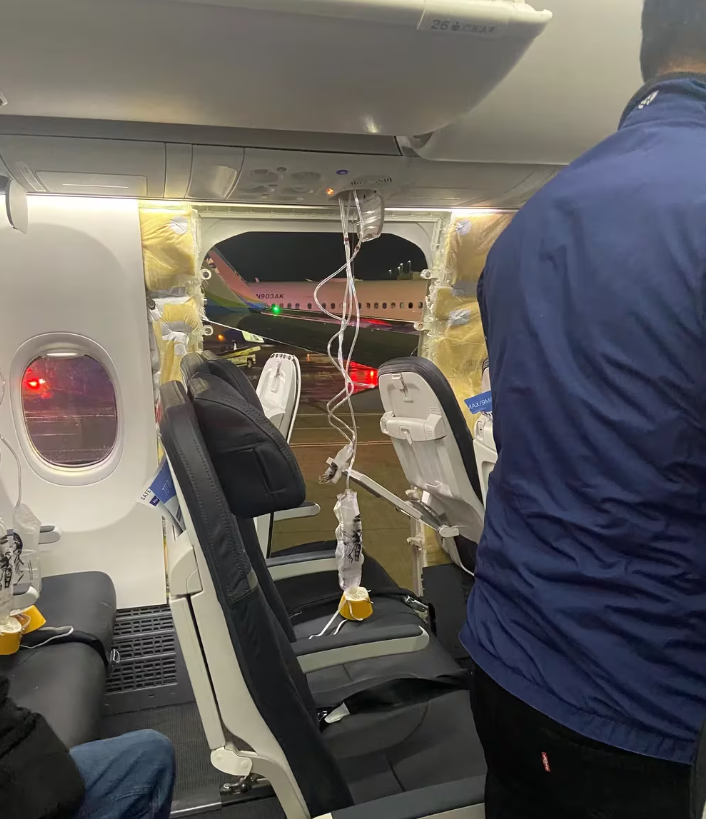 Un pasajero envió una fotografía a la televisora KATU-TV en la que se ve lo que parece ser un enorme agujero en un lateral del aeroplano junto a los asientos de los pasajeros. Un video compartido por la cadena mostraba a gente con máscaras de oxígeno y a pasajeros aplaudiendo al tocar tierra.
