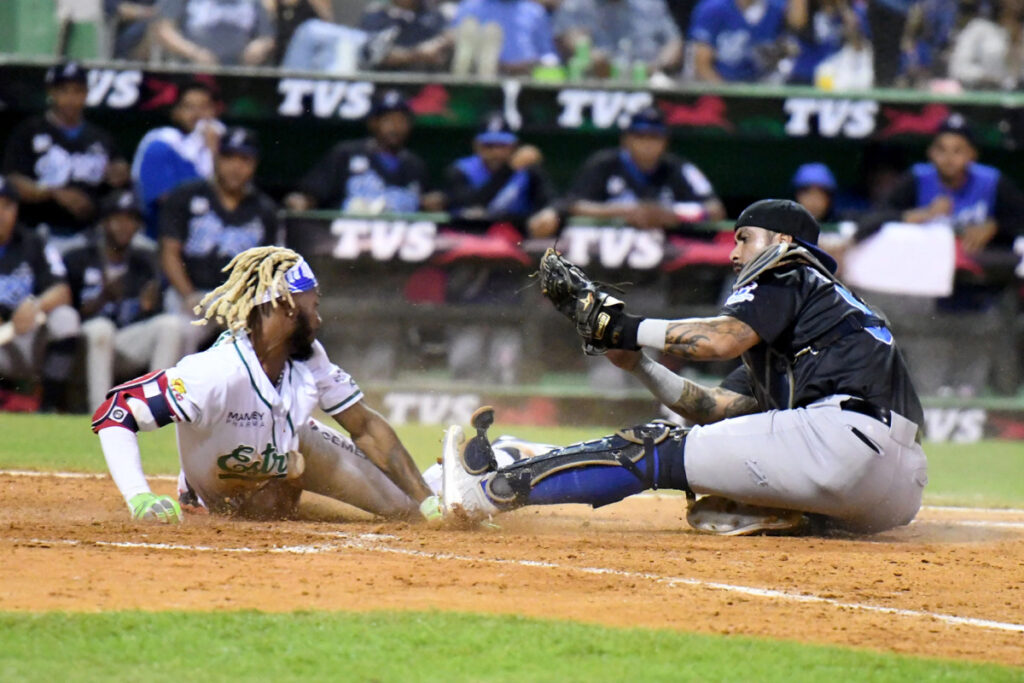 Con un compañero a bordo en la primera base, Raimel Tapia, ex jardinero de los Rockies de Colorado y Red Sox de Boston en la MLB, logró llegar a salvo en home plate tras dar un toque de bola. Tapia aprovechó el error que cometió el antesalista de los Tigres del Licey tras su tiro malo a la inicial y gracias a su velocidad fue que llegó quieto a home para cimbrar las dos primeras carreras del juego.