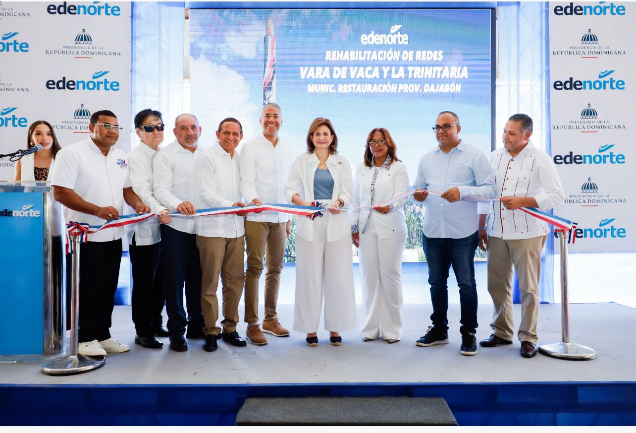 DAJABÓN. – La vicepresidenta Raquel Peña encabezó el sábado el acto de inauguración de los proyectos de rehabilitación de redes e iluminación en dos comunidades de aquí, ejecutados por Edenorte Dominicana, con una inversión de RD$ 36.82 millones.