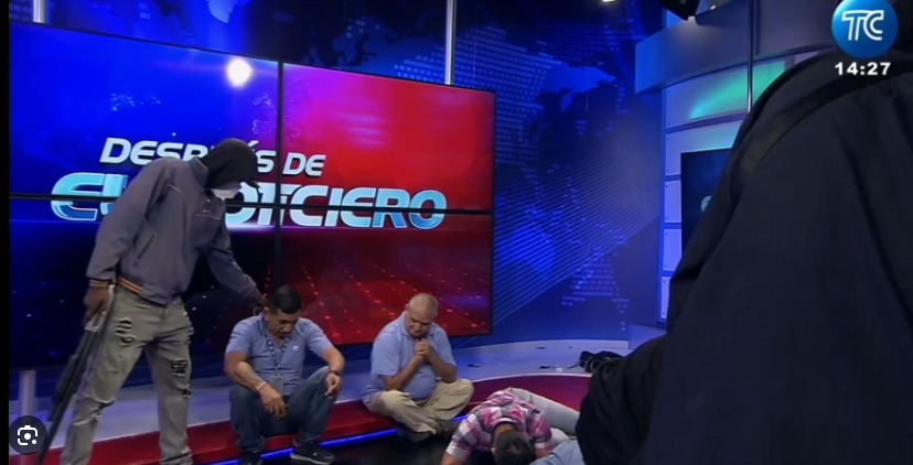 En la tarde, se registró el acto que más alarmó a la población. Se trató de la toma del canal TC Televisión, ubicado en la ciudad de Guayaquil, en la provincia de Guayas. Los delincuentes, encapuchados y armados retuvieron a los trabajadores, acción que fue transmitida en vivo por al menos 15 minutos.