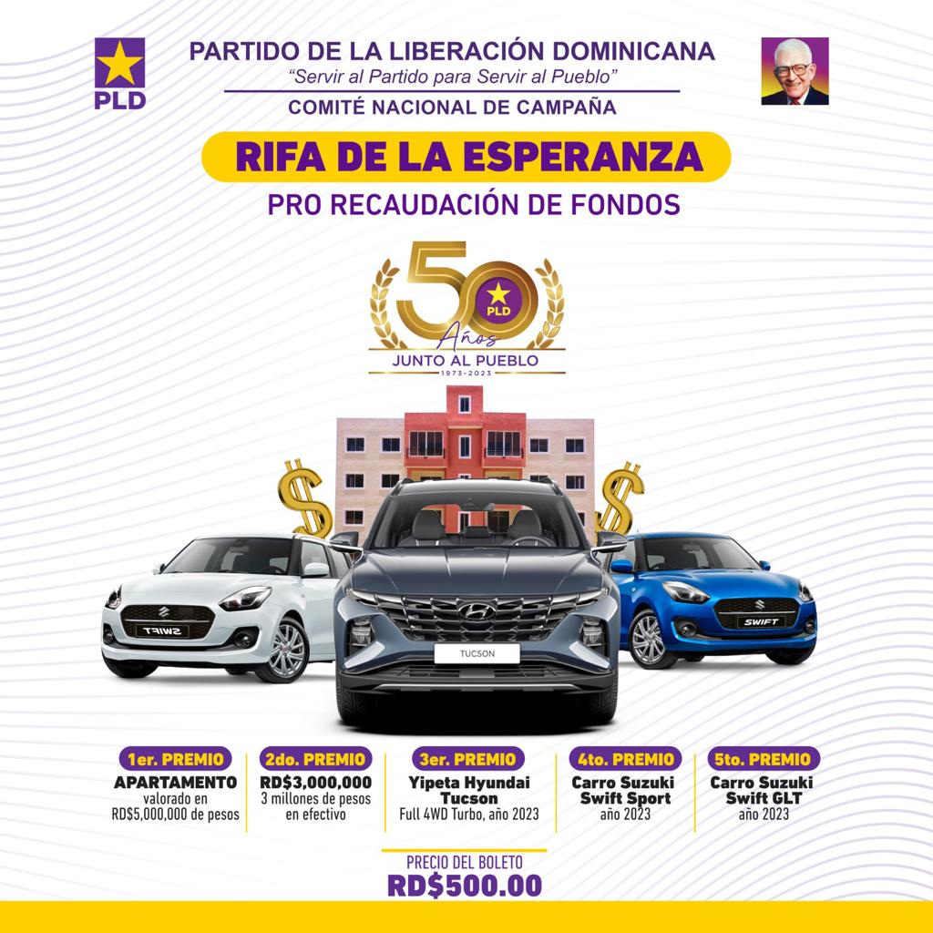 Santo Domingo RD—En una lucha sin descanso, el Partido de la Liberación Dominicana (PLD) continúa motivando a cada uno de los dirigentes con la realización de la "Rifa de la Esperanza", reprogramada para el viernes 2 de febrero con la finalidad de recaudar fondos cruciales para la campaña electoral a nivel nacional.
