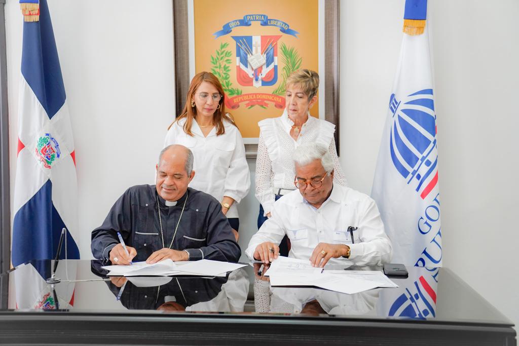 El director ejecutivo interino del CEA, doctor Rafael Burgos Gómez el obispo de esta diócesis, monseñor Julio Cesar Cornielle Amaro, firmaron los contratos mediante el cual la sede eclesiástica recibió en usufructo dichos predios con fines sociales y religiosos.