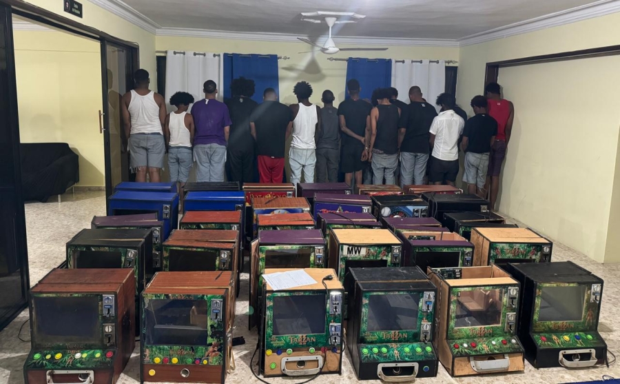 También se incautaron dos pistolas calibre nueve milímetros, con su cargador y varias cápsulas, 06 balanzas, un radio de comunicación, decenas de armas blancas, 30 máquinas tragamonedas y RD $21,000 pesos dominicanos.