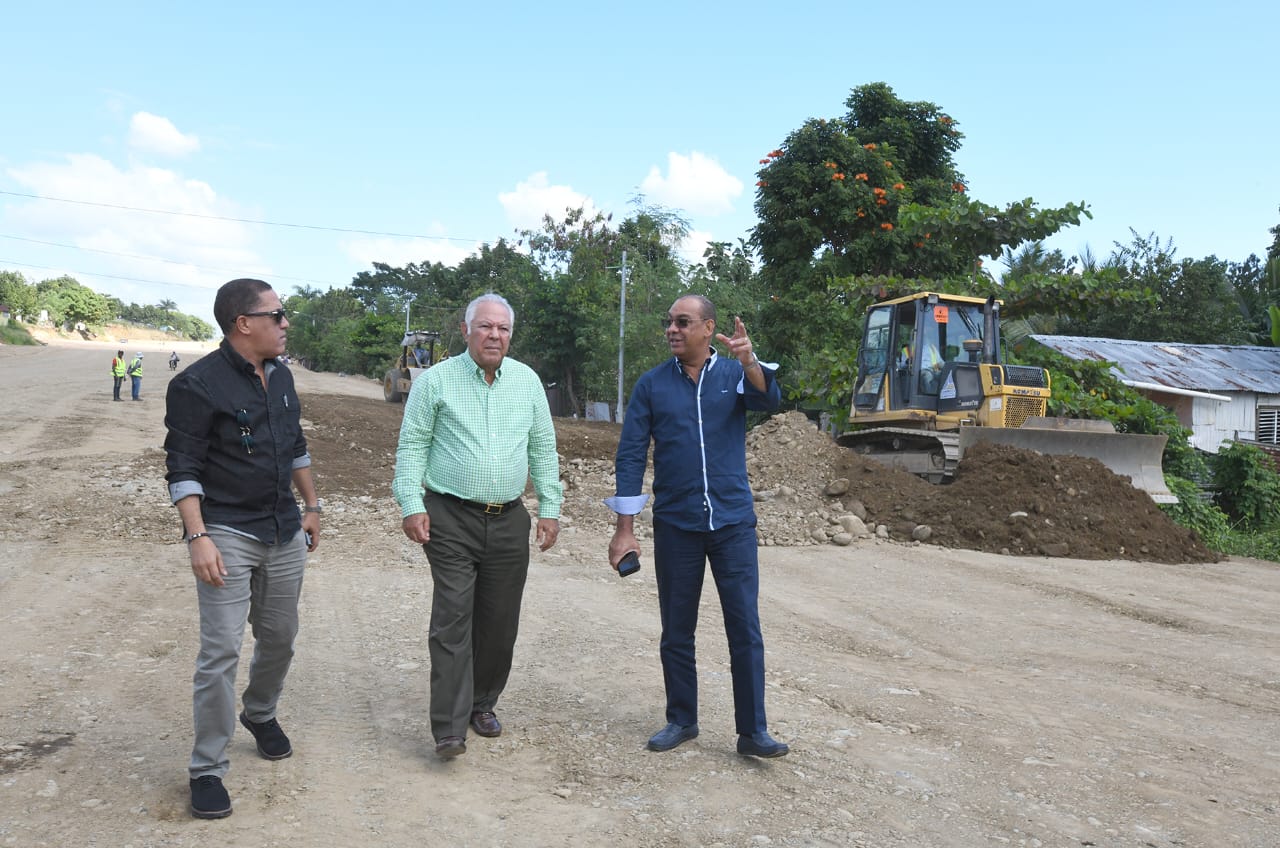 LOS ALCARRIZOS. El ministro de Obras Públicas y Comunicaciones, MOPC, ingeniero Deligne Ascención Burgos, el viceministro de Supervisión y Fiscalización, Roberto Herrera y Joel Then, ejecutivo de la empresa constructora Compreica, supervisaron los trabajos que se realizan en la circunvalación de este municipio, los cuales están avanzados en más de un 65%.