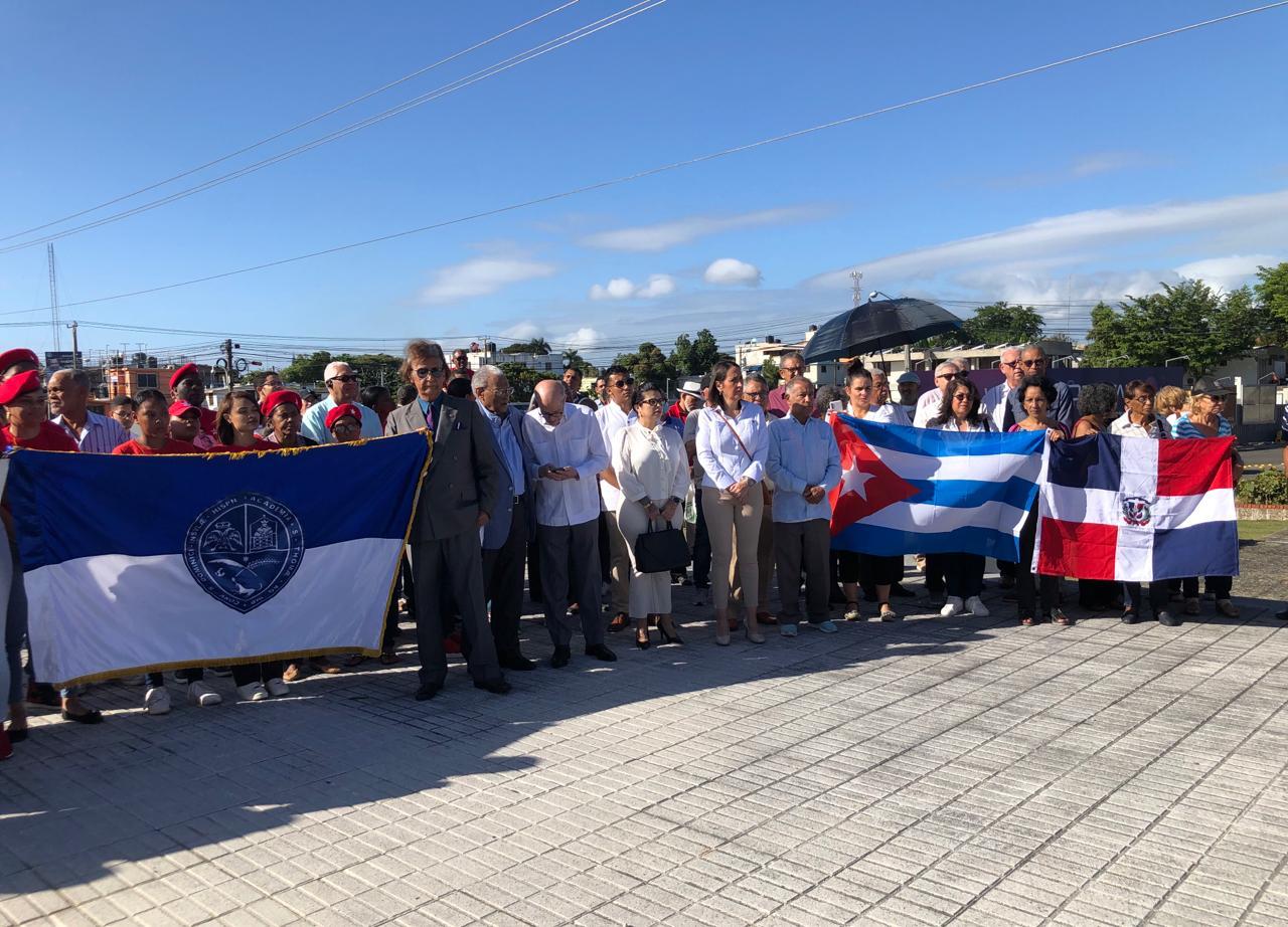 En la ofrenda floral estuvieron presentes además, el decano de la Facultad de Humanidades, Gerardo Roa Ogando; Roberto Payano, coordinador de la campaña Dominicana de Solidaridad con Cuba, Eliades Acosta Matos, entre otras personalidades.