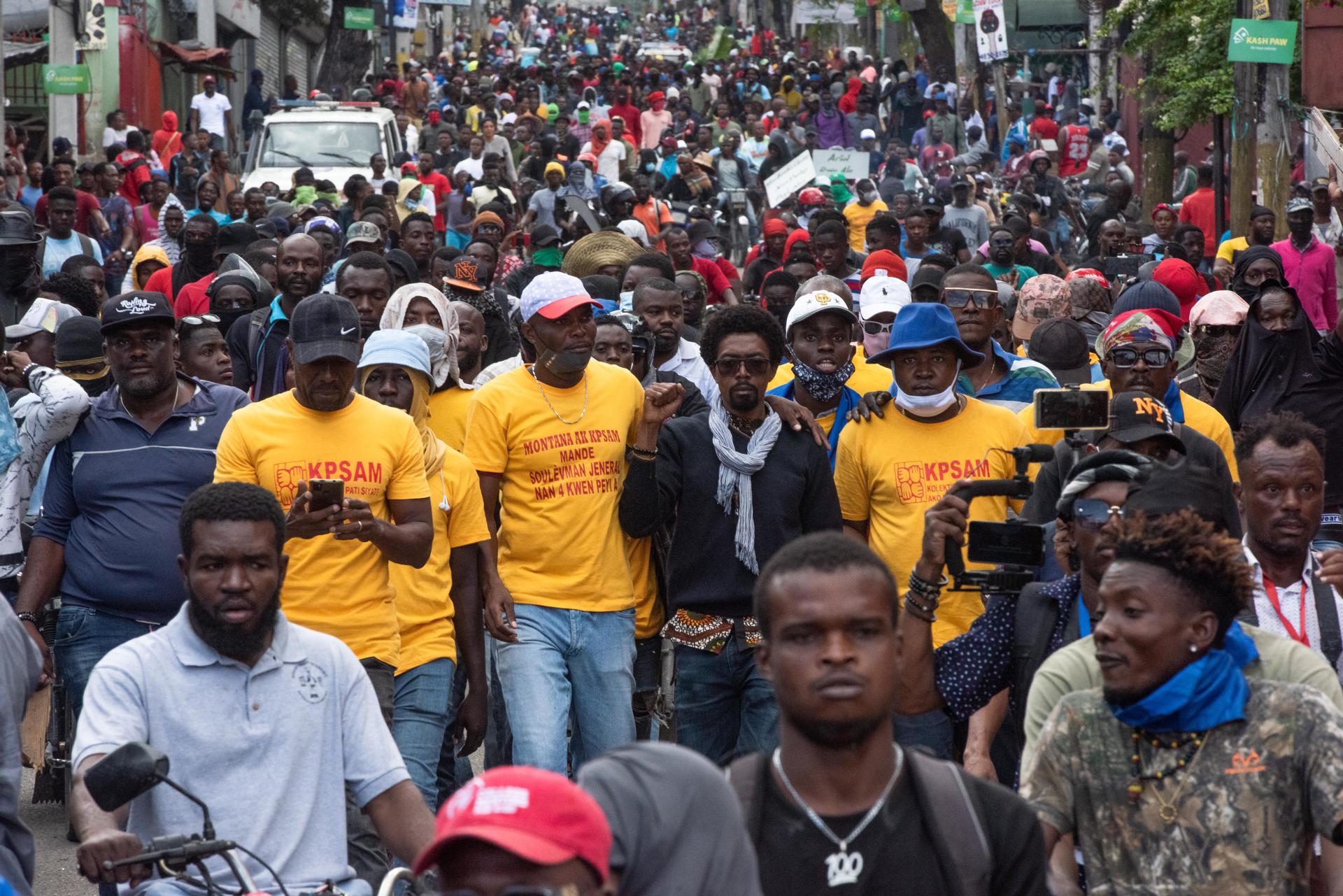 Manifestantes participan de una gran protesta antigubernamental, en Puerto Príncipe (Haití). EFE/Siffroy Clarens