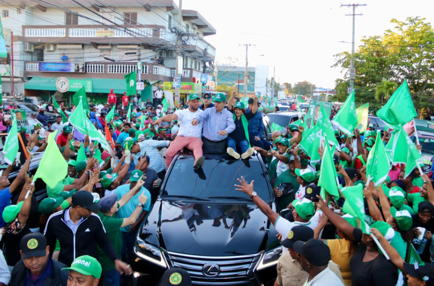 LOS ALCARRIZOS.– Miles de personas se lanzaron a las calles de esta población para saludar y apoyar al candidato presidencial de la Fuerza del Pueblo, Leonel Fernández.