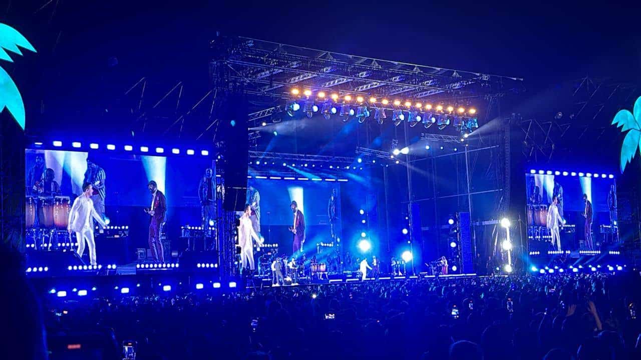 Un escenario compuesto por tres pantallas y dos palmeras en cada extremo, sumado a una escenografía digital que destaca lo tropical, hizo lucir el escenario junto a la agrupación 4.40, quienes se disfrutaron por el igual el repertorio.