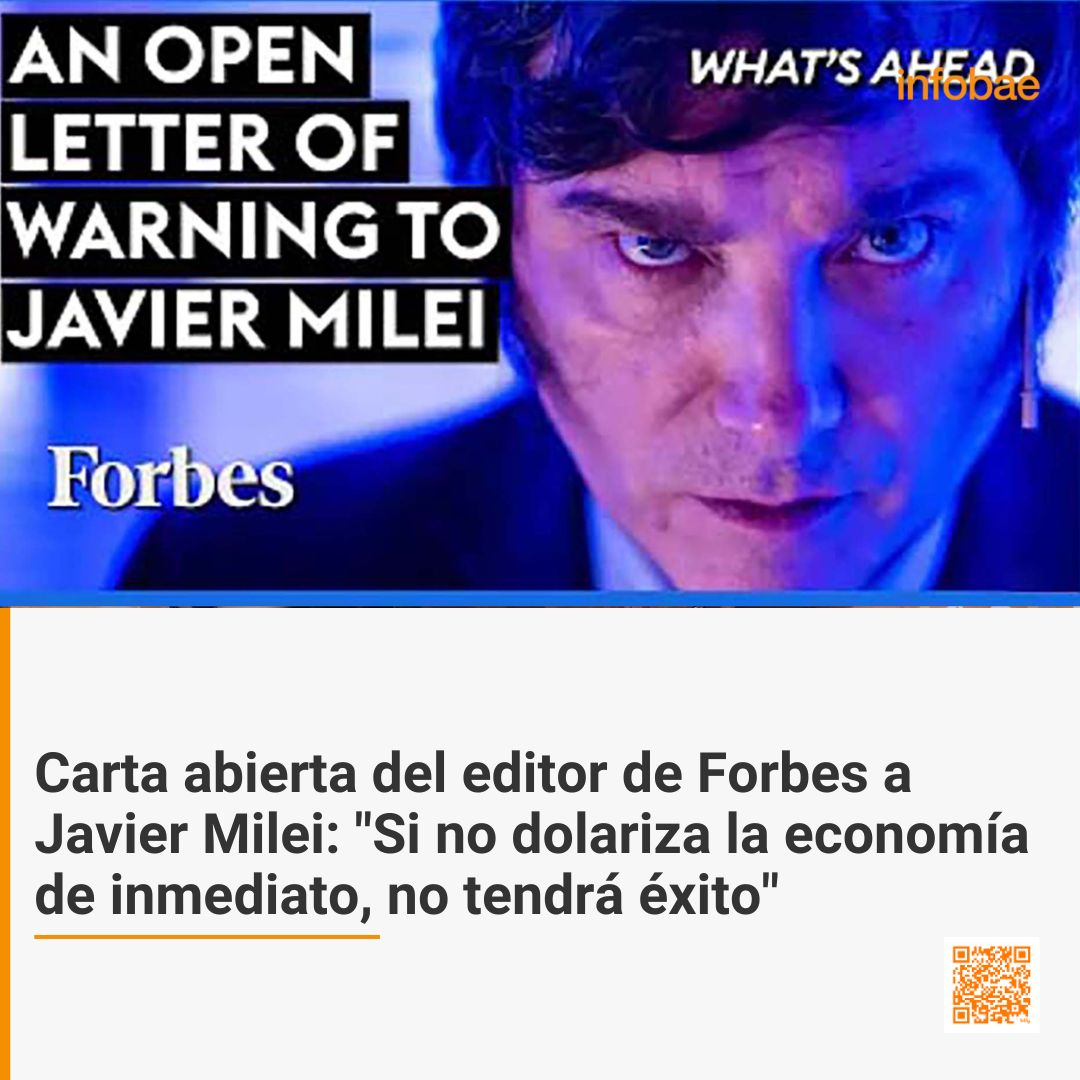 “No perdió tiempo en proponer reformas radicales tan pronto como prestó juramento como presidente de Argentina. Pero su revolución de la libertad va camino al fracaso a menos que lleve a cabo inmediatamente la parte más importante de su plataforma electoral, reemplazando el peso por el dólar estadounidense. Desde su victoria electoral, lo han inundado con una avalancha de advertencias de que no es posible dolarizar la economía; este coro chillón de detractores está totalmente equivocado”, continuó Forbes.
