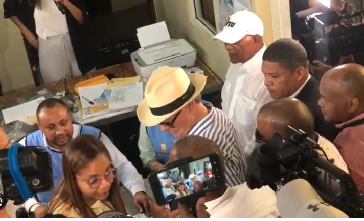 A pesar del contratiempo, minutos después Hipólito Mejía logró resolver la situación y ejerció su derecho al voto.