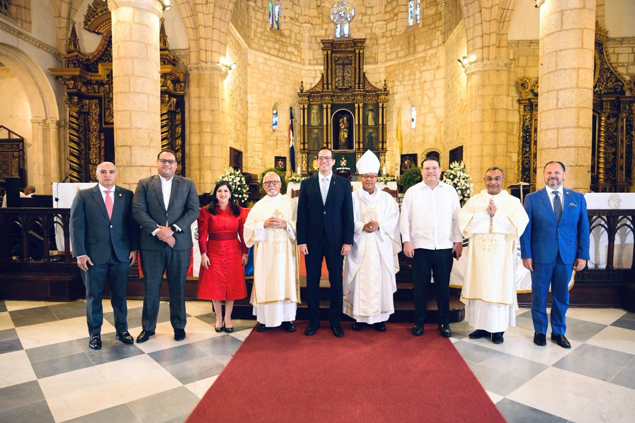 La misa de Acción de Gracias fue oficiada por Monseñor Faustino Burgos Brisman, obispo auxiliar de Santo Domingo y a la misma asistieron: el director general de Aduanas, Eduardo Sanz Lovatón; la directora ejecutiva de ProDominicana, Biviana Riveiro; el director ejecutivo del Departamento Aeroportuario, Víctor Pichardo; el presidente de la Comisión Presidencial para la Modernización y Seguridad Portuaria, Alejandro Campos, entre otras personalidades.