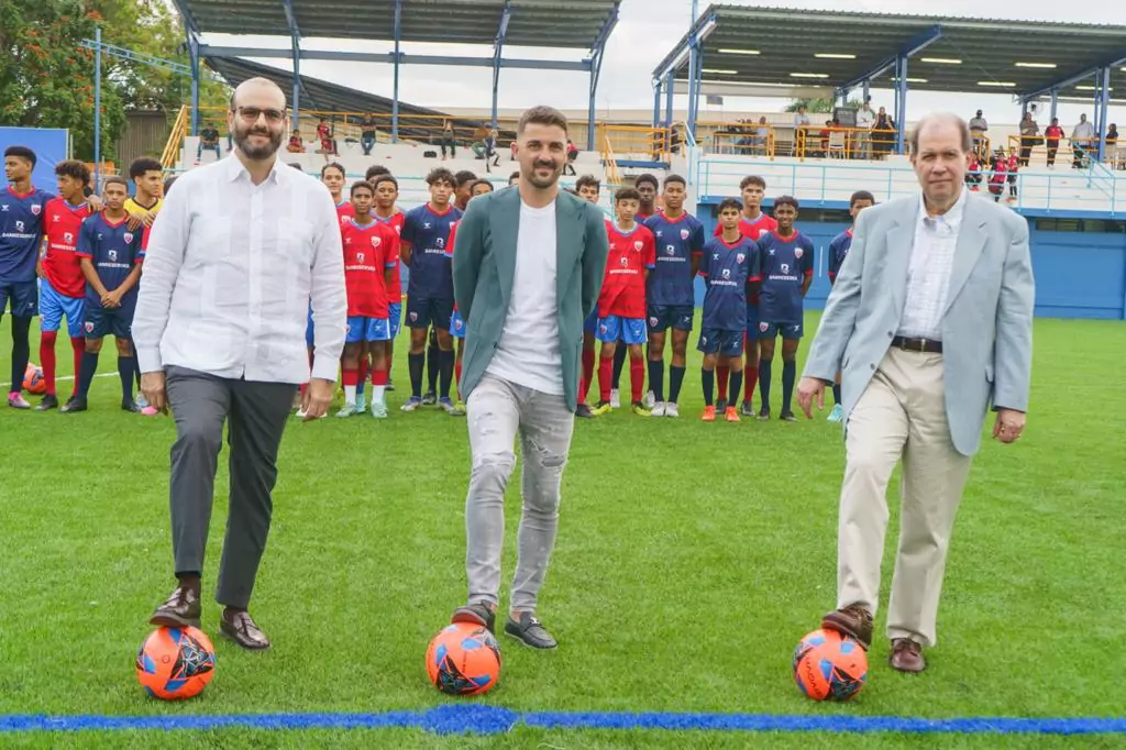 Santo Domingo.-En un trascendental paso hacia el futuro del fútbol en la República Dominicana, el reconocido exjugador del Barcelona y empresario David Villa, vino al país para estar en la inauguración formal del renovado “Complejo de Fútbol Banreservas DV7”, una academia y agencia dedicada a la formación de niños y jóvenes talento.