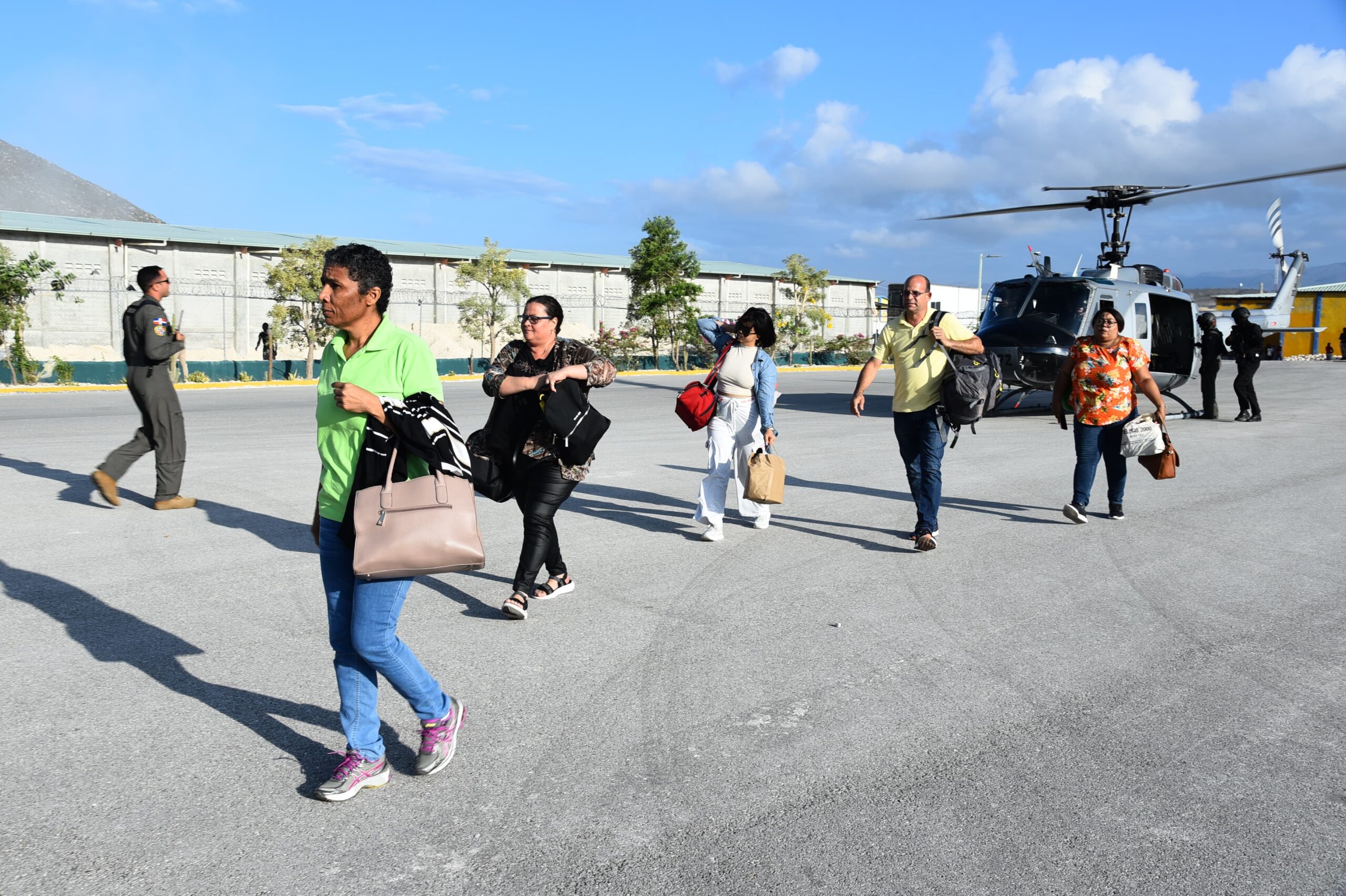 Los evacuados son 18 hombres, siete mujeres y dos menores de edad, quienes aterrizaron en el helipuerto de la Fuerza de Tarea Conjunta e Interagencial de Jimaní, provincia Independencia.