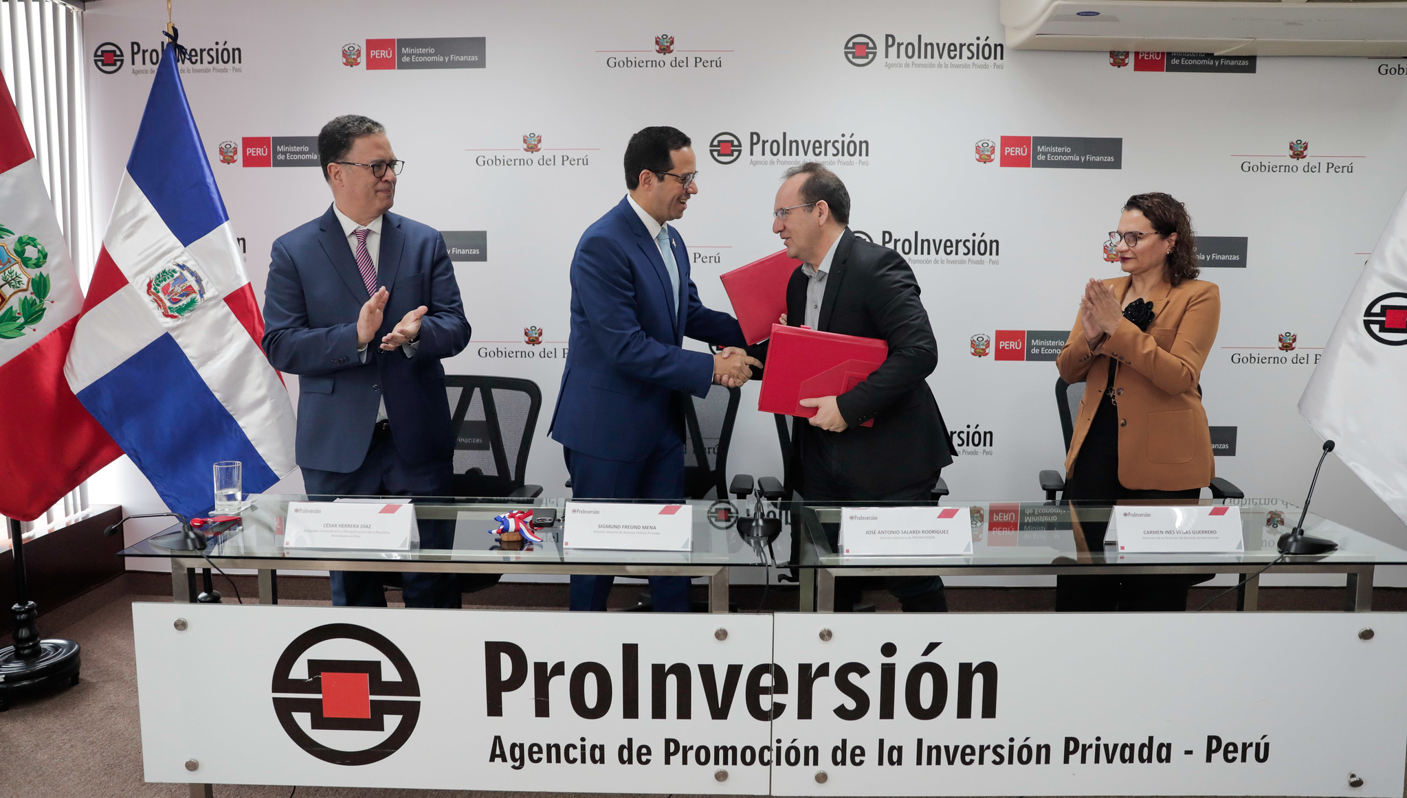 El convenio, rubricado por el director ejecutivo de la DGAPP, Sigmund Freund, y el director ejecutivo de Proinversión, José Salardi, y en presencia del embajador de República Dominicana en Perú, Cesar Herrera Díaz, tiene el propósito de propiciar el fortalecimiento de las capacidades de ambas instituciones en materia de APP y cooperar en actividades vinculadas a la promoción de la inversión privada.
