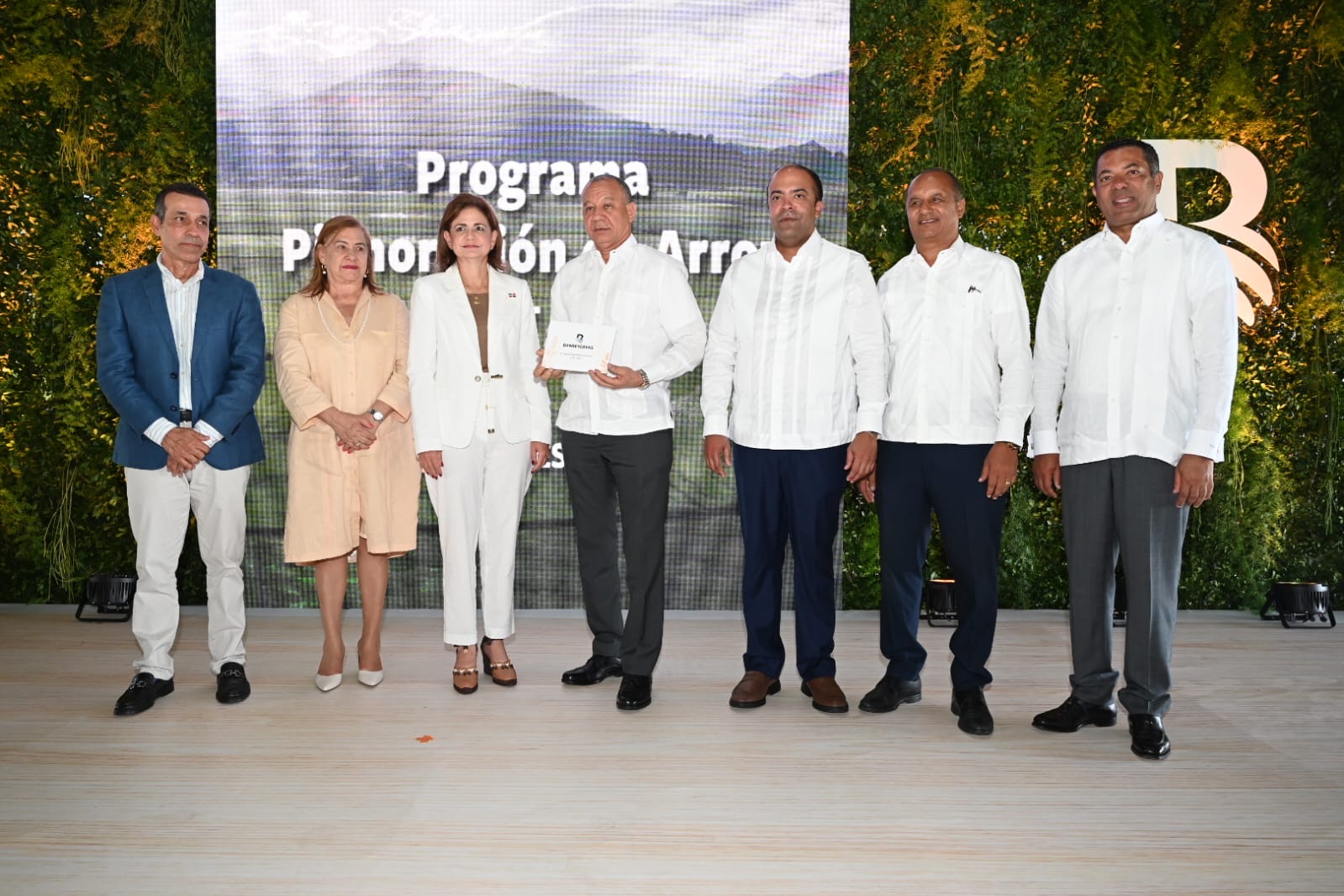 En el Lanzamiento del Programa de Pignoración de Arroz 2024-2025, efectuada en Cerro Alto Mountin Club, en La Vega, también estuvieron autoridades municipales, congresistas, representantes del sector agrícola; miembros del Consejo de Directores y ejecutivos de negocios del Banco de Reservas.