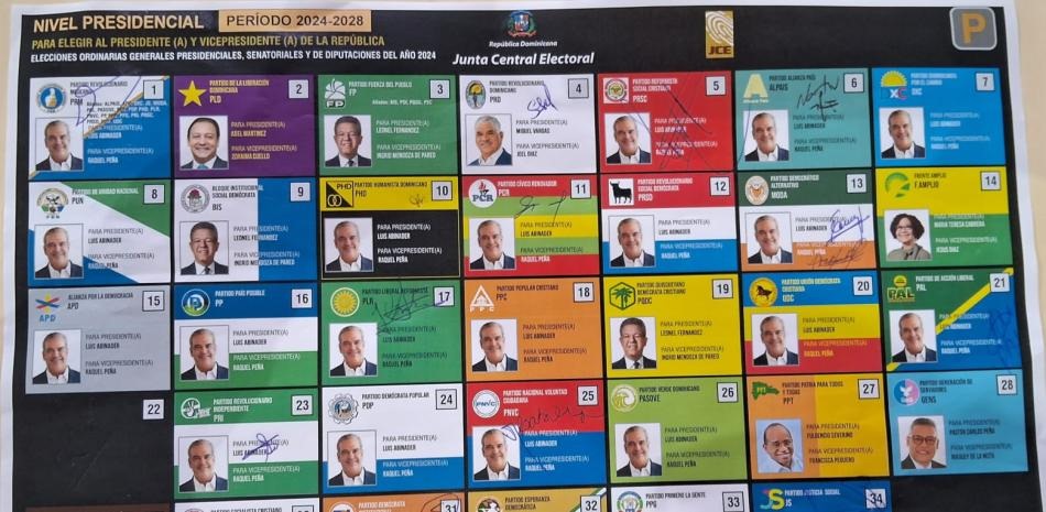 SANTO DOMINGO, RD.- En la boleta electoral entregada por la Junta Central electoral a los partidos políticos para su revisión, tiene 33 casillas con los nueve candidatos presidenciales. La cara de Abinader se repite en 21 recuadro y la de Leonel está en cinco.