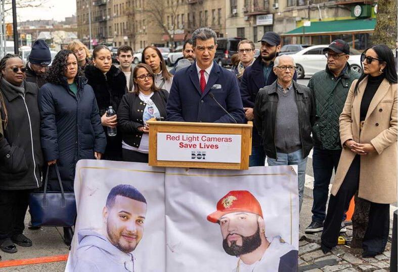 NUEVA YORK.- El comisionado del Departamento de Transporte de la Ciudad de Nueva York (NYC DOT), Ydanis Rodríguez, se unió este miércoles a familiares de David Fernández y Joel Adames, quienes murieron trágicamente en un accidente en el Alto Manhattan en 2022, para pedir la renovación y expansión del programa de cámaras de semáforo en rojo de la ciudad.