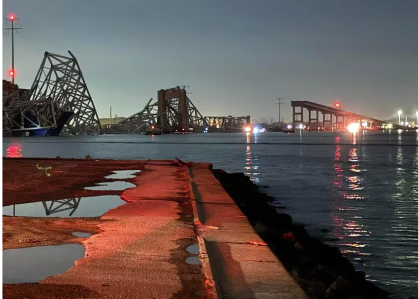 Las agencias de emergencias recibieron llamadas de aviso en torno a la 01:30 que reportaban que una embarcación que salía de Baltimore había golpeado uno de los pilares de la infraestructura, provocando un derrumbe. En ese momento, sobre el puente había varios vehículos, incluyendo uno del tamaño de un camión con remolque.
