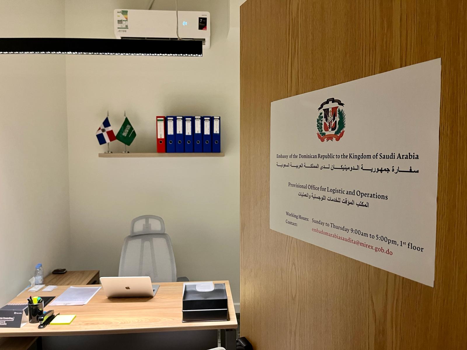 El diplomático informó que el domicilio temporal de la embajada está ubicado en la calle Musa Ibn Nusai, Al Olaya, Siricone Tower 2, primer piso, oficina #1, Riad 12241, Reino de Arabia Saudita, disponible de inmediato para atención a los dominicanos residentes y visitantes en esa nación y al público en general, y puesta en conocimiento de la Cancillería saudí, el cuerpo diplomático y consular y los organismos internacionales acreditados.