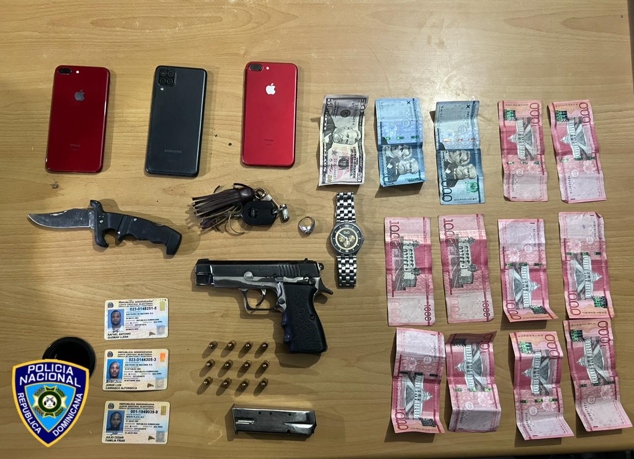 De acuerdo con el informe policial, los agentes actuantes sorprendieron en flagrante delito a los antes mencionados, secuestrando al señor Guerrero, residente de la comunidad de Haina, quien fue interceptado a la fuerza y mediante amenazas en el municipio de Boca Chica, próximo al peaje de Las Américas, mientras este conducía su vehículo marca Toyota Hilux, blanco, el cual dejaron abandonado en el referido lugar.