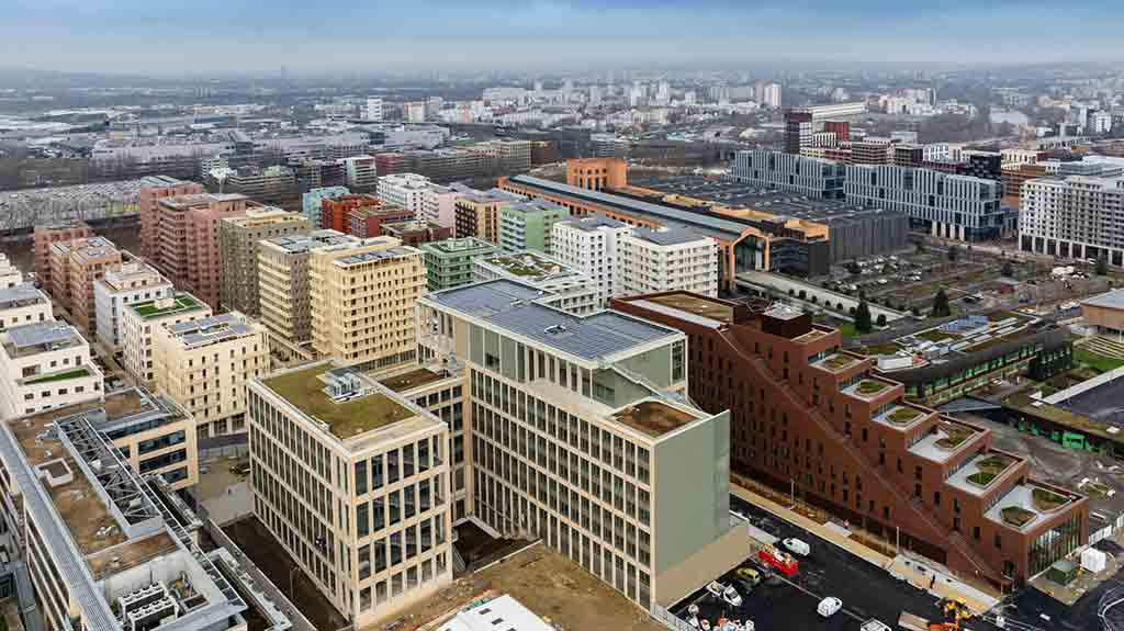 Esta propuesta de Francia será “eco friendly”. ¿Por qué? “Tuvimos cuidado con nuestra huella de carbono y utilizamos muchos materiales naturales. Todos los edificios tienen menos de 20 metros de altura, tienen madera en sus fachadas y muchas veces en sus estructuras y pisos”, contó Yann Krysinski, jefe de operaciones de la empresa constructora. El sector tiene espacios verdes y funcionará con energía 100 por ciento renovable.