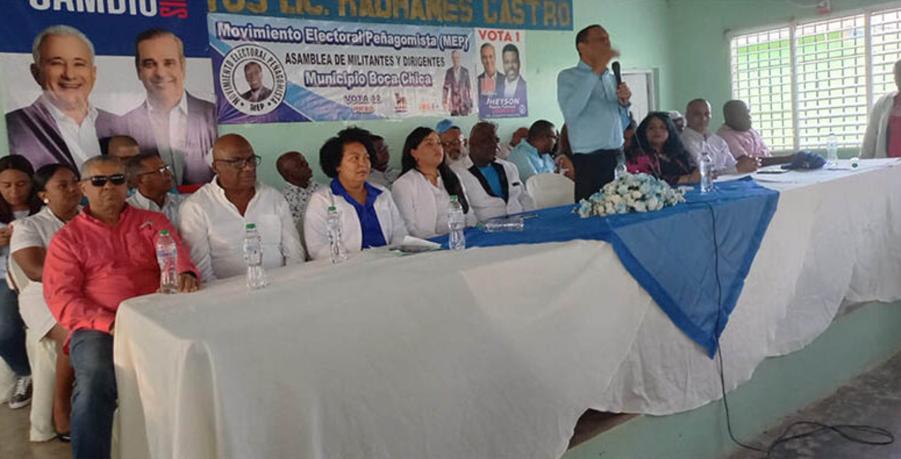 Boca Chica.- El presidente del Movimiento Electoral Peñagomista (MEP) encabezó en este municipio de la provincia Santo Domingo un masivo encuentro en respaldo a la reelección del presidente Luis Abinader, en el que hizo un llamado a los dirigentes, militantes y simpatizantes de esa corriente en todo el país a votar en la casilla 12 del Partido Revolucionario Social Demócrata (PRSD) que lidera Luis Miguel De Camps.