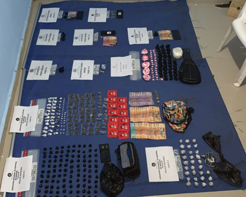 También se confiscaron 90 radios de comunicación, cinco chalecos antibalas, 253 balanzas, tijeras, mochilas, cuatro máquinas tragamonedas, 4,782,724 pesos dominicanos, 1,563 dólares estadounidenses y otras evidencias.