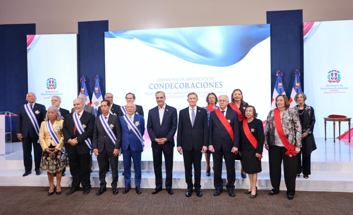 Santo Domingo.- El ministro de Relaciones Exteriores, Roberto Álvarez impuso, en presencia del presidente Luis Abinader, las condecoraciones de la Orden del Mérito de Duarte, Sánchez y Mella; y la Orden Heráldica de Cristóbal Colón, a 19 embajadores dominicanos por sus largos años de servicio-
