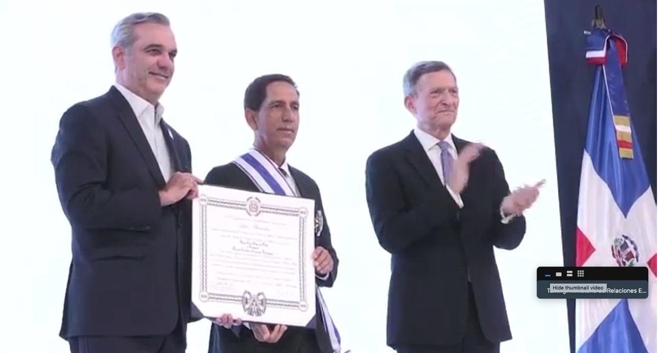 Santo Domingo, RD.- El ministro de Relaciones Exteriores, Roberto Álvarez impuso, en presencia del presidente Luis Abinader, las condecoraciones de la Orden del Mérito de Duarte, Sánchez y Mella; y la Orden Heráldica de Cristóbal Colón, a 19 embajadores dominicanos quienes se han desempeñado como diplomáticos por hasta 65 años, sirviendo a los mejores intereses del país.
