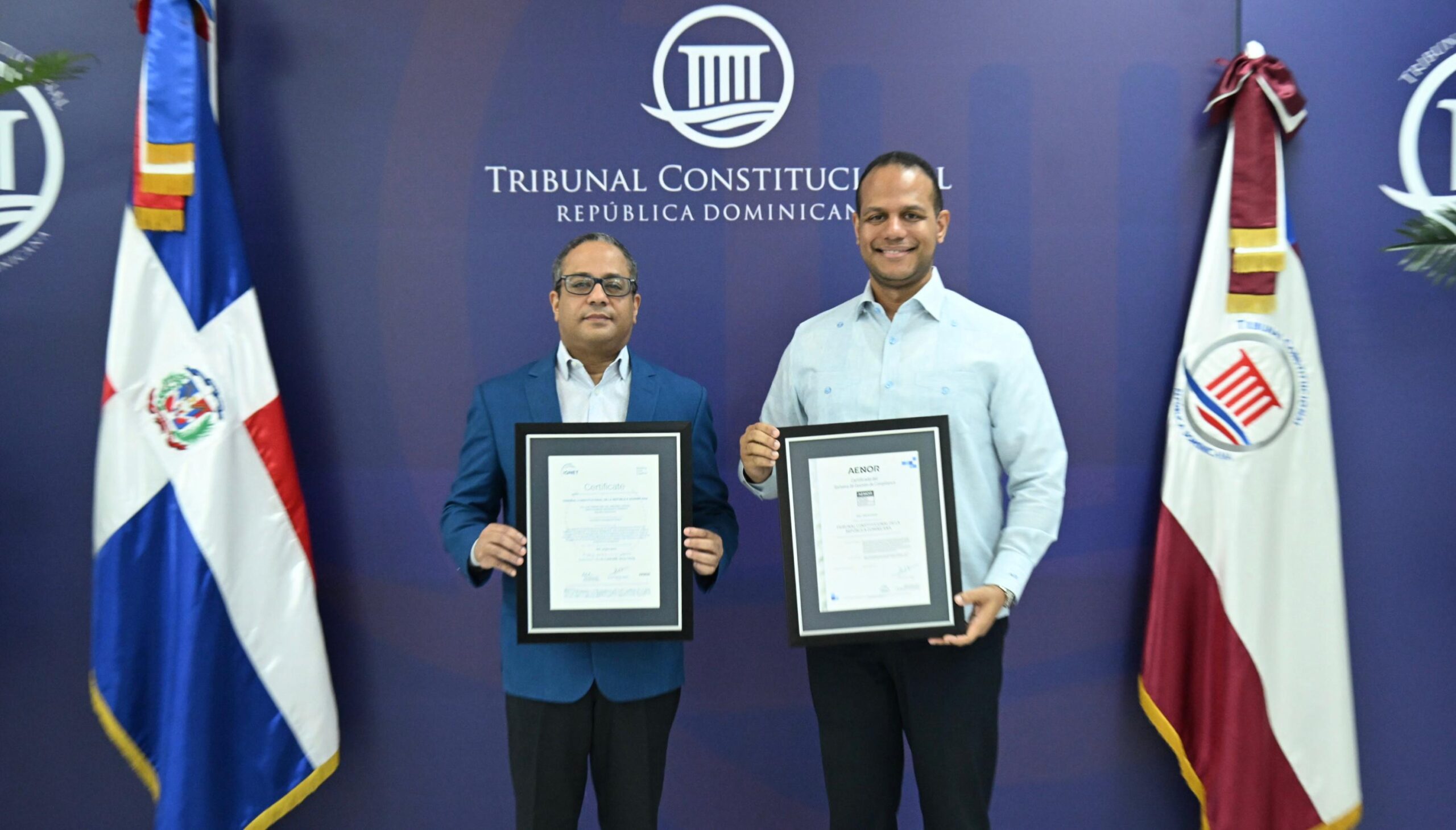 SANTO DOMINGO. El magistrado Napoleón R. Estévez Lavandier, presidente del Tribunal Constitucional (TC), recibió hoy dos certificados sobre el Sistema de Gestión Compliance, norma ISO-37301, el primero emitido por Aenor, y el segundo por IQNet, una red de más de cuarenta empresas certificadoras a nivel internacional.