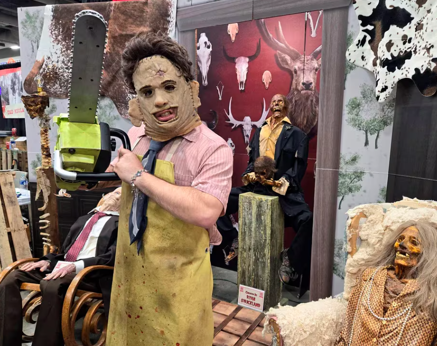 “Michael Myers [Halloween, 1978] tiene máscara, Jason [Viernes 13, 1980] tiene máscara. Pero Leatherface fue el primero. Creo que sentó un precedente sobre cómo serían las películas de terror”, dice el fanático Josh Hazard, de 40 años, vestido como Leatherface durante el Texas Frightmare Weekend en Irving, noroeste de Dallas, donde se conmemoró los 50 años de la película y varios de los actores se reencontraron.