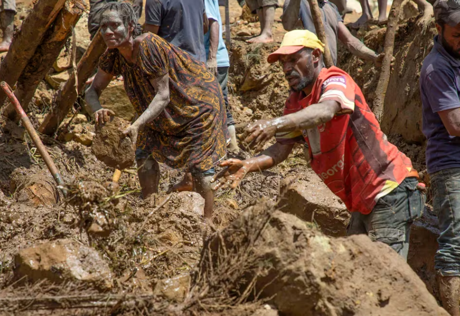 Una masa de rocas, tierra y árboles rotos devastó la localidad de Yambali, en las remotas tierras altas de la nación insular del Pacífico sur, cuando una ladera de piedra caliza se desprendió el viernes. El manto de escombros se ha vuelto más inestable debido a las lluvias recientes y a los arroyos que quedaron atrapados entre el suelo y los restos, dijo Serhan Aktoprak, director de la misión de la Organización Internacional para las Migraciones en Papúa Nueva Guinea.