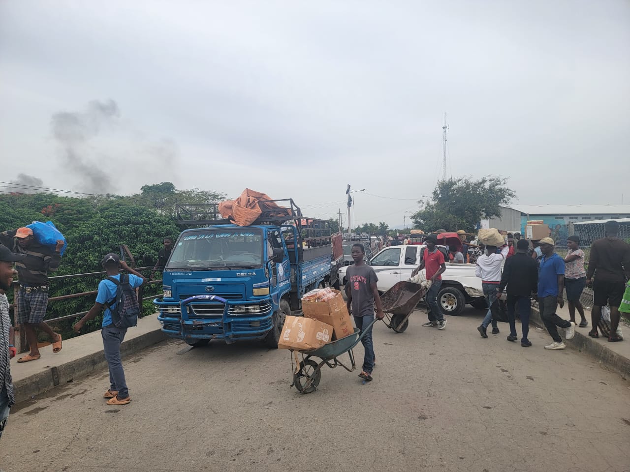 Dajabón.-Camioneros haitianos bloquearon este domingo por más de tres horas el puente internacional del lado de su territorio en demanda de que se les permita ingresar al mercado binacional con sus vehículos para transportar las mercancías que adquieren hasta Juana Méndez.