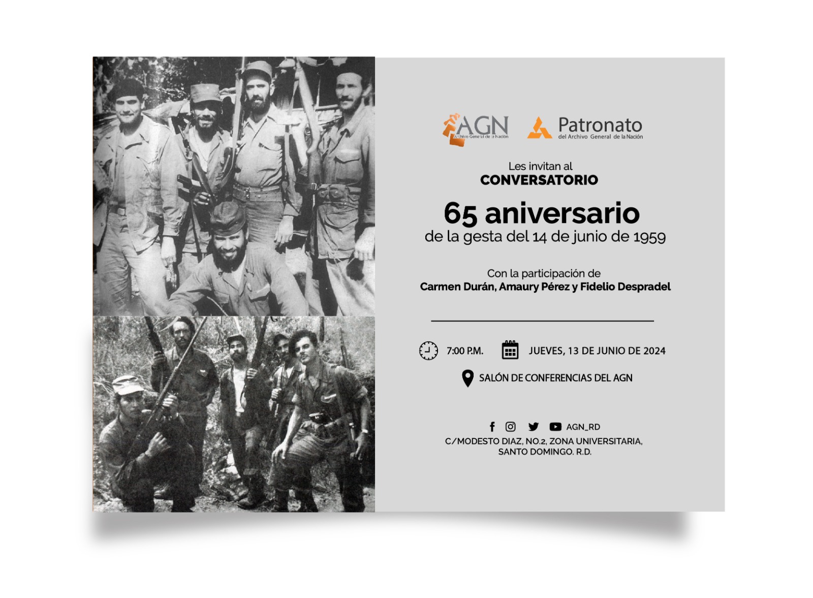 El evento contará con la participación de Carmen Durán, Amaury Pérez y Fidelio Despradel, y está programado para el jueves 13 de junio de 2024, a las 7:00 P.M., en el Salón de Conferencias del Archivo General de la Nación.
