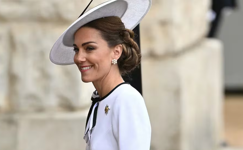 Kate Middleton, la princesa de Gales, apareció este sábado por primera vez en público desde que le fue diagnosticado un cáncer, a bordo de una carroza junto a sus tres hijos en el desfile que celebra el cumpleaños oficial del rey Carlos III.
