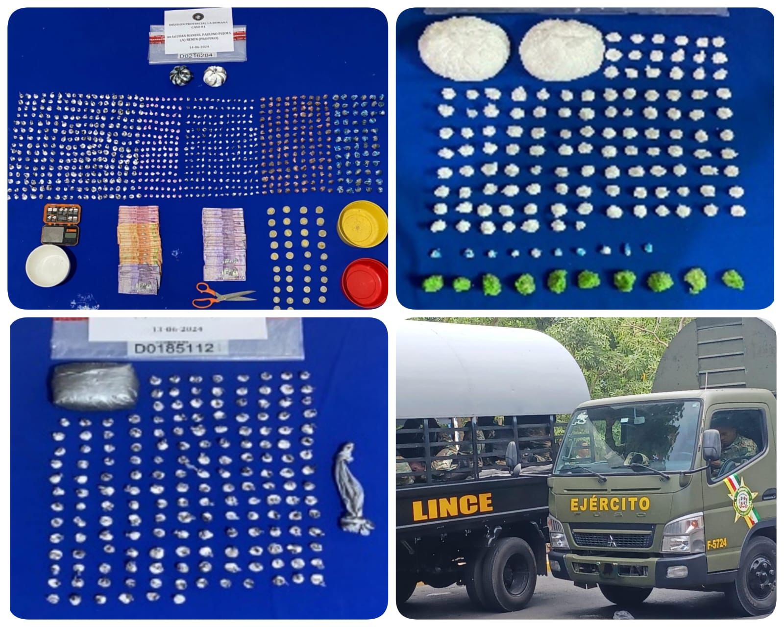 En tanto que, Miembros de Tarea Conjunta en coordinación con agentes de la DNCD y el Ministerio Público intervinieron tres puntos de drogas en los sector del centro de la ciudad, Villa Verde y Villa Pereyra, donde ocuparon un total de 1, 085 porciones de distintas estupefacientes.
