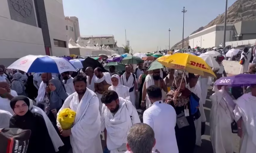 El domingo por la mañana, las multitudes se dirigieron a pie a las zonas de lapidación. Algunos fueron vistos empujando a peregrinos discapacitados en sillas de ruedas en una carretera de varios carriles que conduce al complejo que alberga los grandes pilares. La mayoría de los peregrinos fueron vistos sofocados y cargando paraguas para protegerse del ardiente sol de verano.