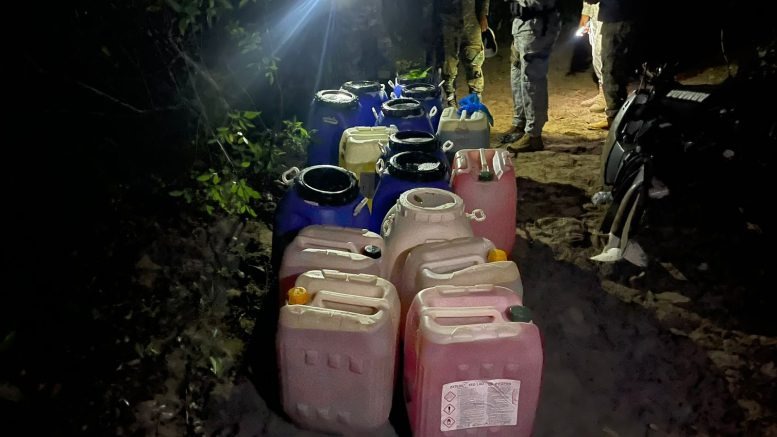 En el lugar, los miembros de la Armada ocuparon una embarcación clandestina de 40 pies de eslora, 02 motores fuera de borda, así como 17 garrafones para gasolina de 15 galones cada uno.