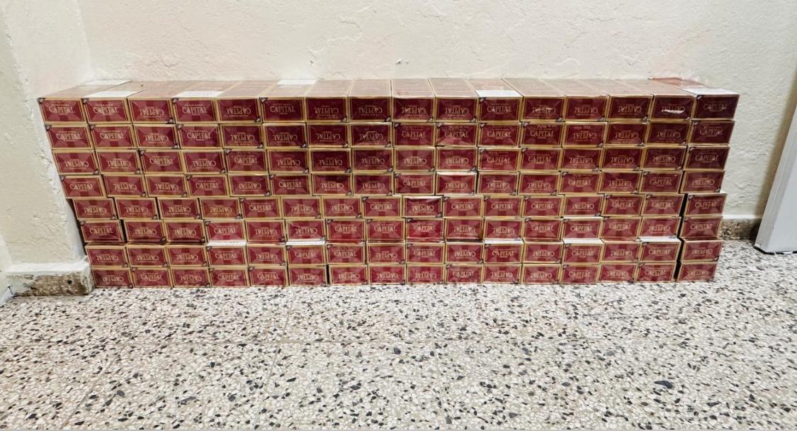 Según el reporte, en una de las habitaciones se encontraron 25,600 unidades de cigarrillos, distribuidas en 128 paquetes, cada uno con 10 cajetillas de 20 unidades.
