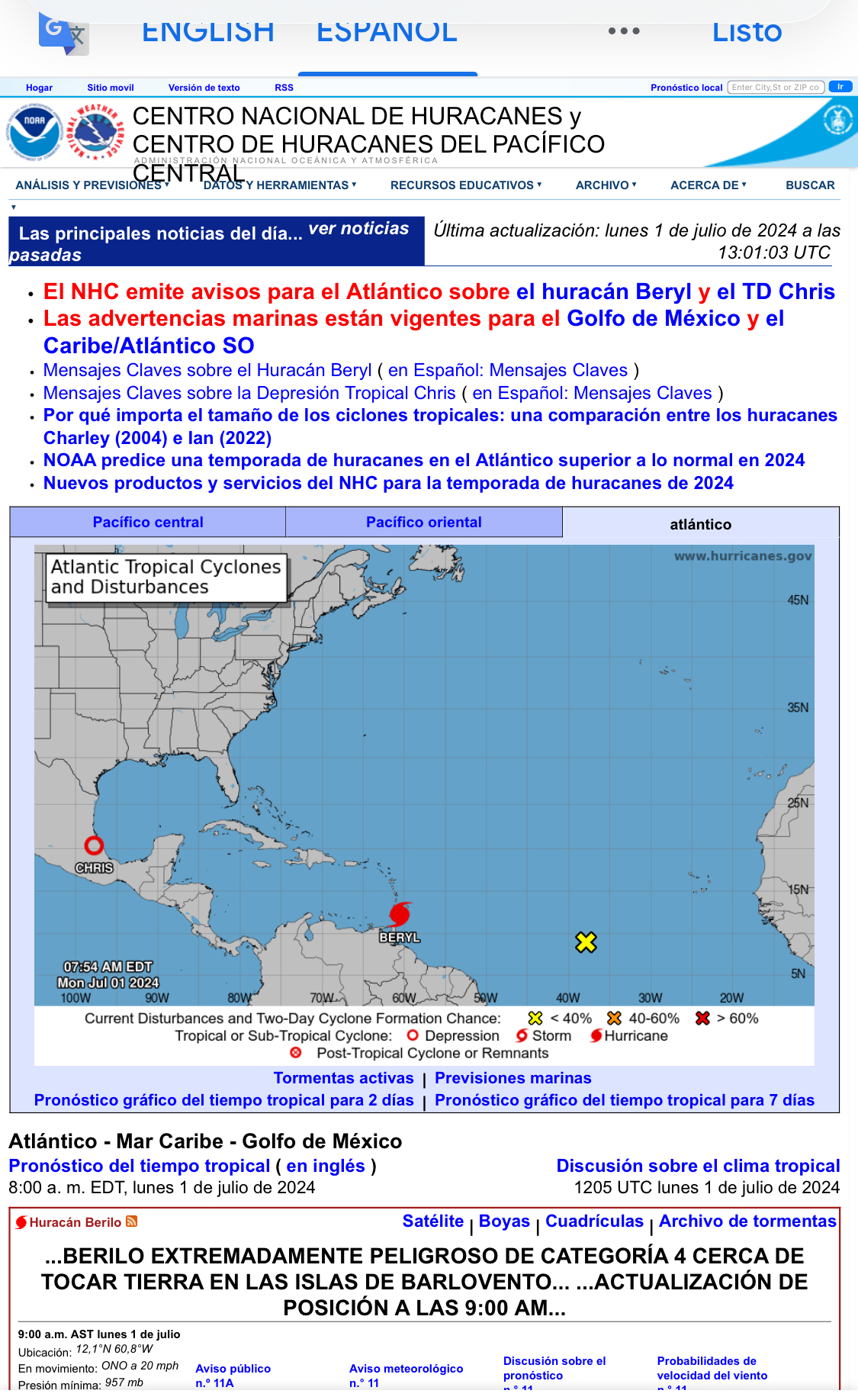 Santo Domingo, RD.- El Centro Nacional de Huracanes de Estados Unidos advirtió que el huracán Beryl volvió a fortalecerse este lunes por la mañana hasta alcanzar la categoría 4 mientras avanza por las islas de Barlovento, poniendo en peligro a varias comunidades isleñas con marejadas ciclónicas, vientos violentos e inundaciones repentinas potencialmente mortales.