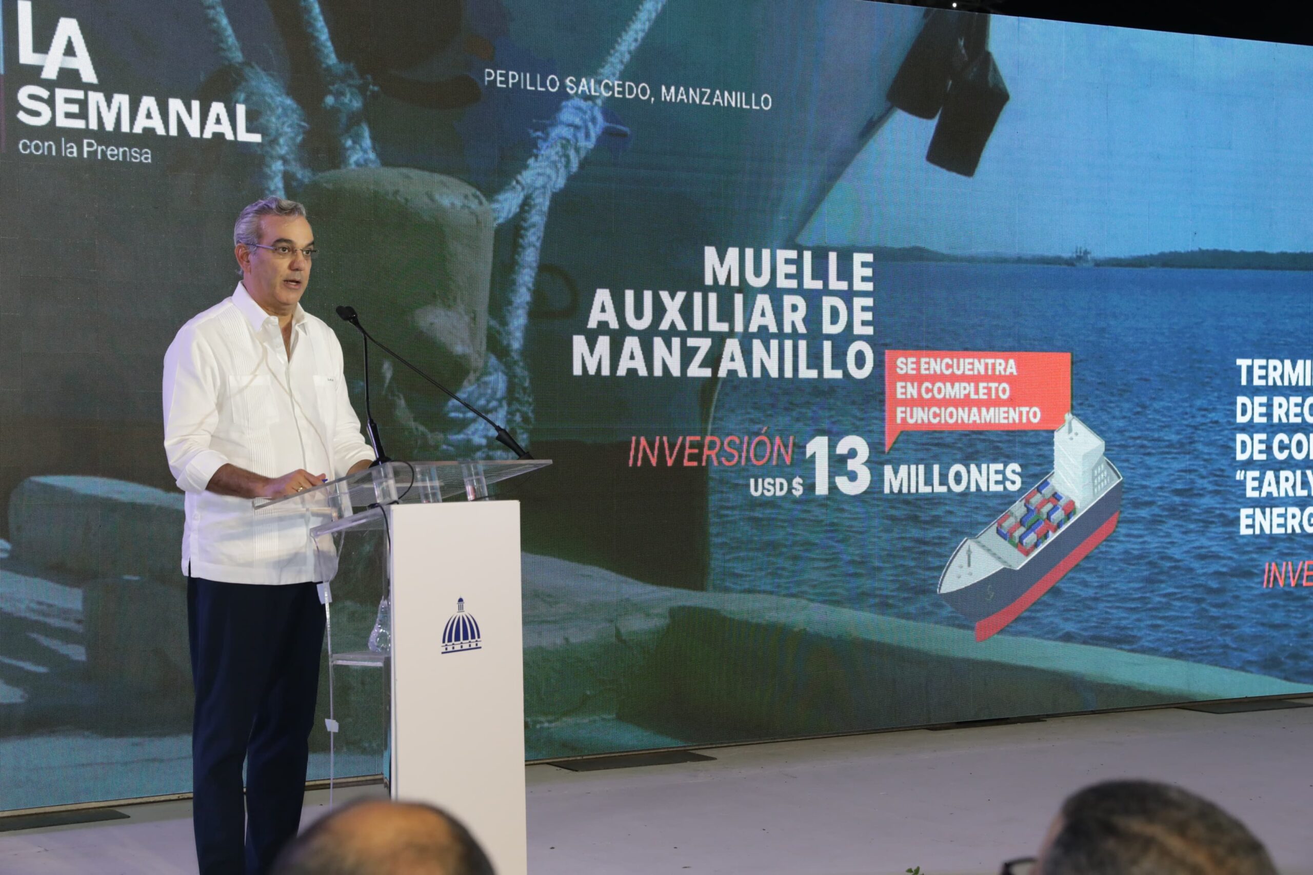Al encabezar el encuentro “LA Semanal con la Prensa” desde el Puerto de Manzanillo, el presidente Luis Abinader aseguró que los nuevos proyectos en esta zona representan seguridad nacional en materia energética.