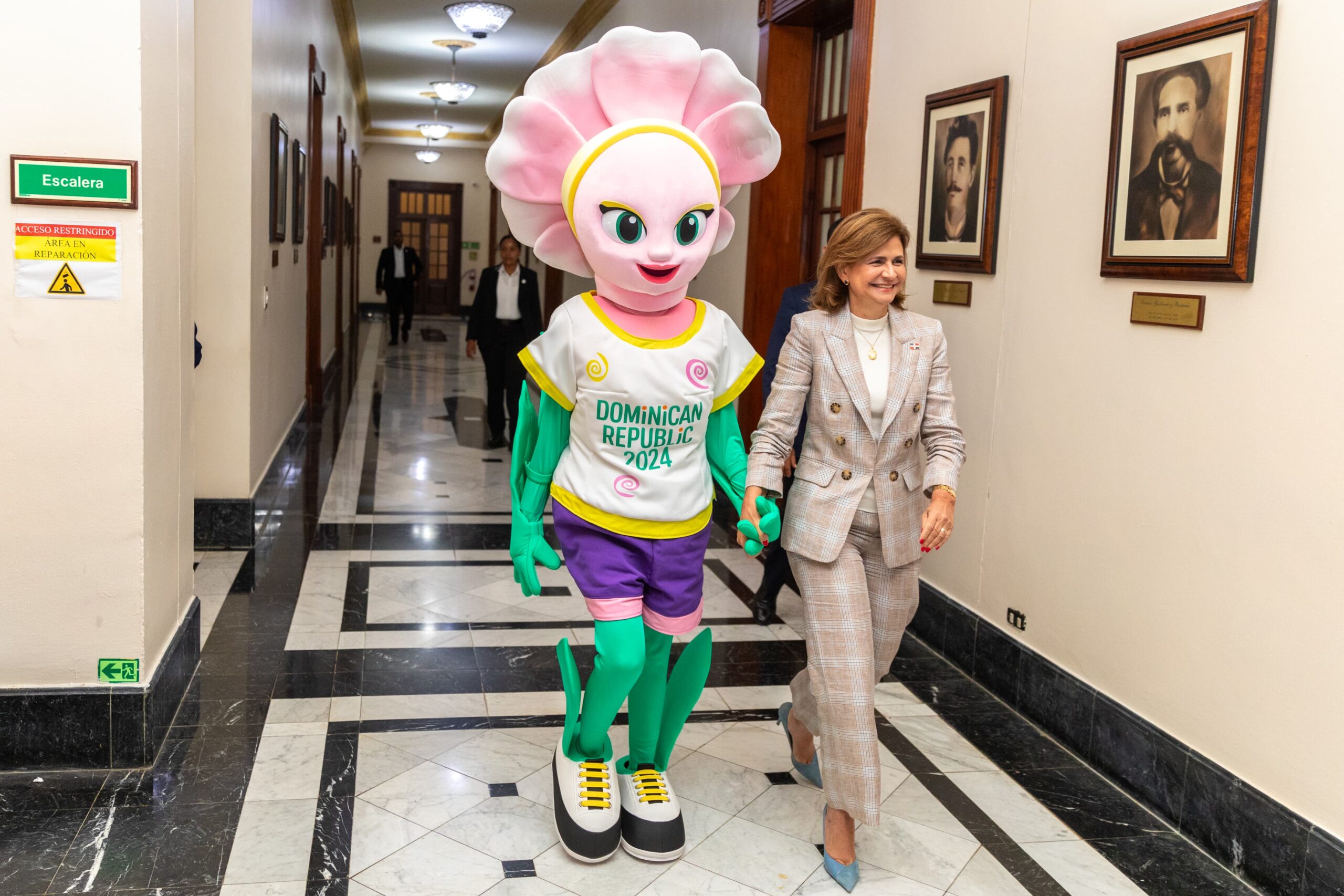Santo Domingo, RD. – Con su característico color rosado, propio de la Rosa de Bayahíbe, llegó al Palacio Nacional Taní; la Mascota Oficial de la Copa Mundial de Futbol Femenina Sub-17, donde fue recibida por la vicepresidenta de la República, Raquel Peña, y el ministro de la Presidencia, Joel Santos.