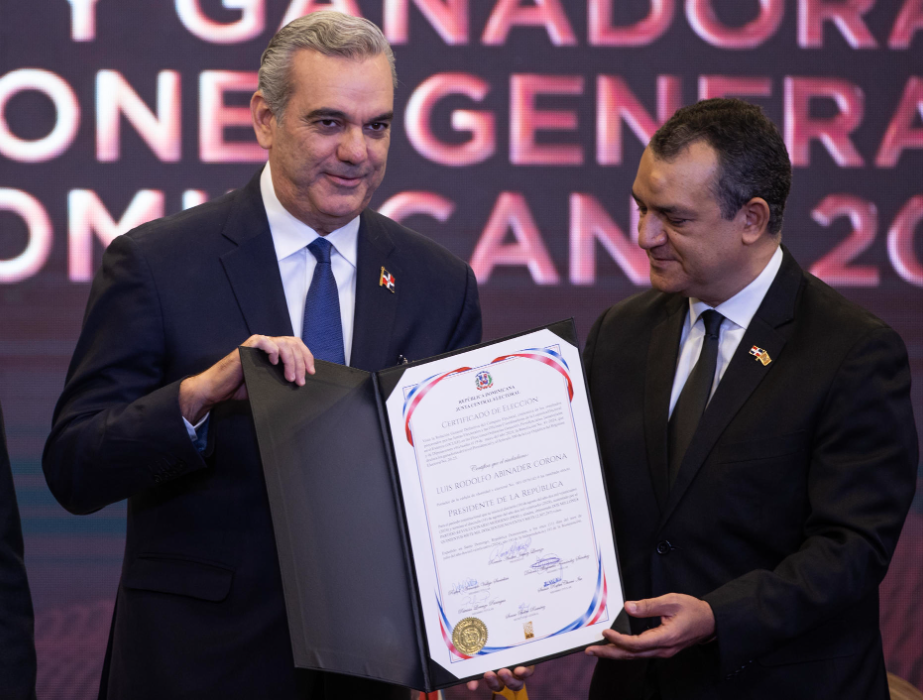 Por EFE. – El presidente Luis Abinader, recibió este jueves el certificado que lo acredita como ganador de las elecciones del 19 de mayo pasado, en las que logró la reelección, y llamó a la unidad de todos los sectores para afrontar los desafíos del país.