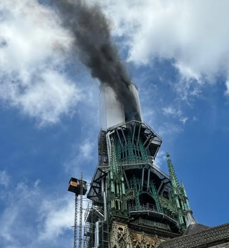Un incendio afectó a la aguja de la catedral gótica de la ciudad francesa de Rouen (Normandía, noroeste), donde se están realizando trabajos de restauración, un suceso que ha evocado, con diferentes proporciones, al grave fuego de Notre Dame de París de abril de 2019.